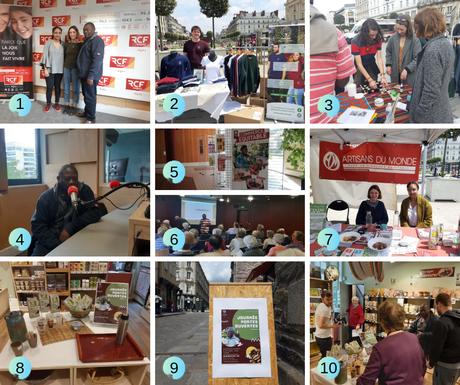 8, 9 et 10 : Samedi 25 mai. Portes ouvertes à la boutique Artisans du Monde avec Joachim Munganga.