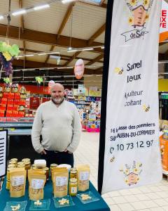Samuel Leroux, apiculteur passionné depuis 4 ans, produit des miels d’été et d’automne à partir de 350 ruches basées tout autour de Saint-Aubin-du-Cormier.